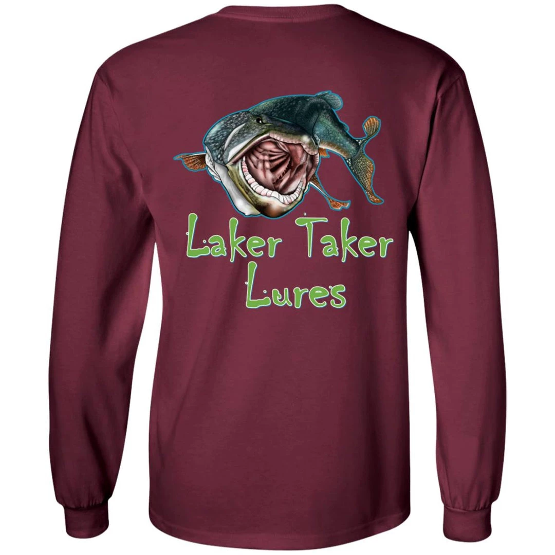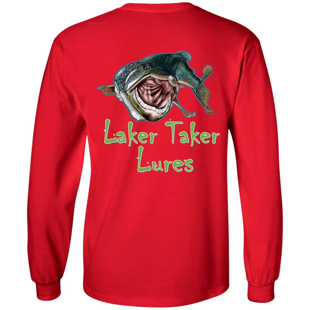 CustomCat Men’s Long Sleeve Laker Taker Tee – Red/White Logo Laker Taker Lures & Swag