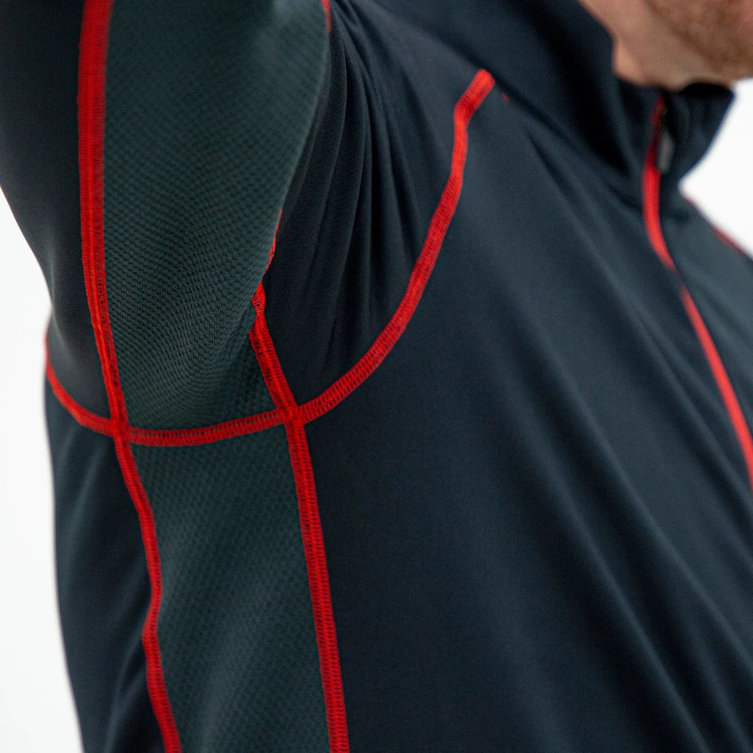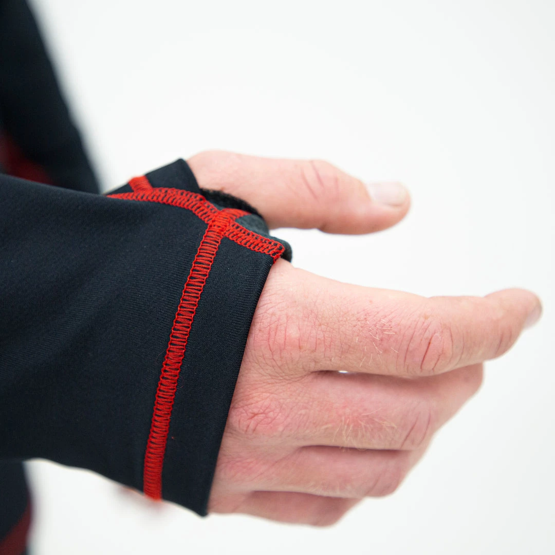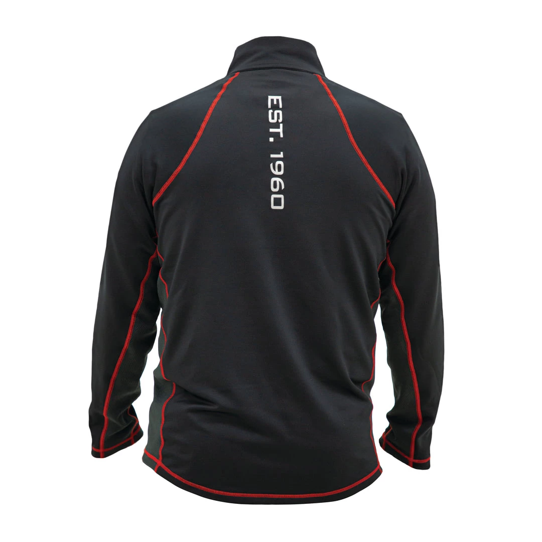 Designed for layering – wicking, medium weight polyester/spandex blend fabric is smooth on the outside, yet soft against the skin