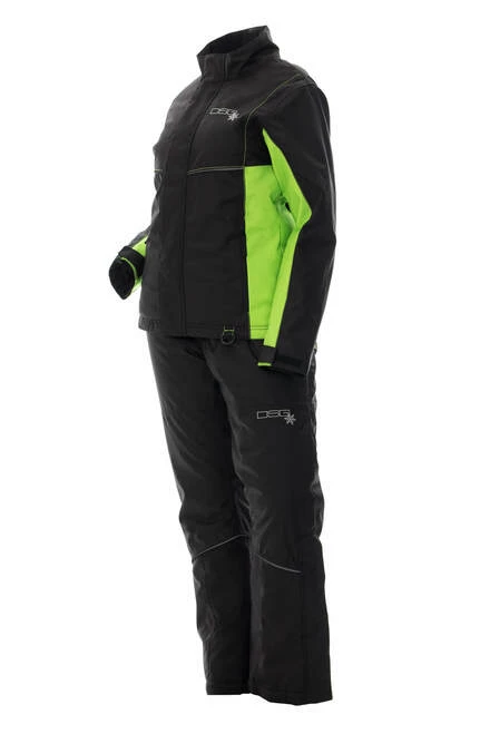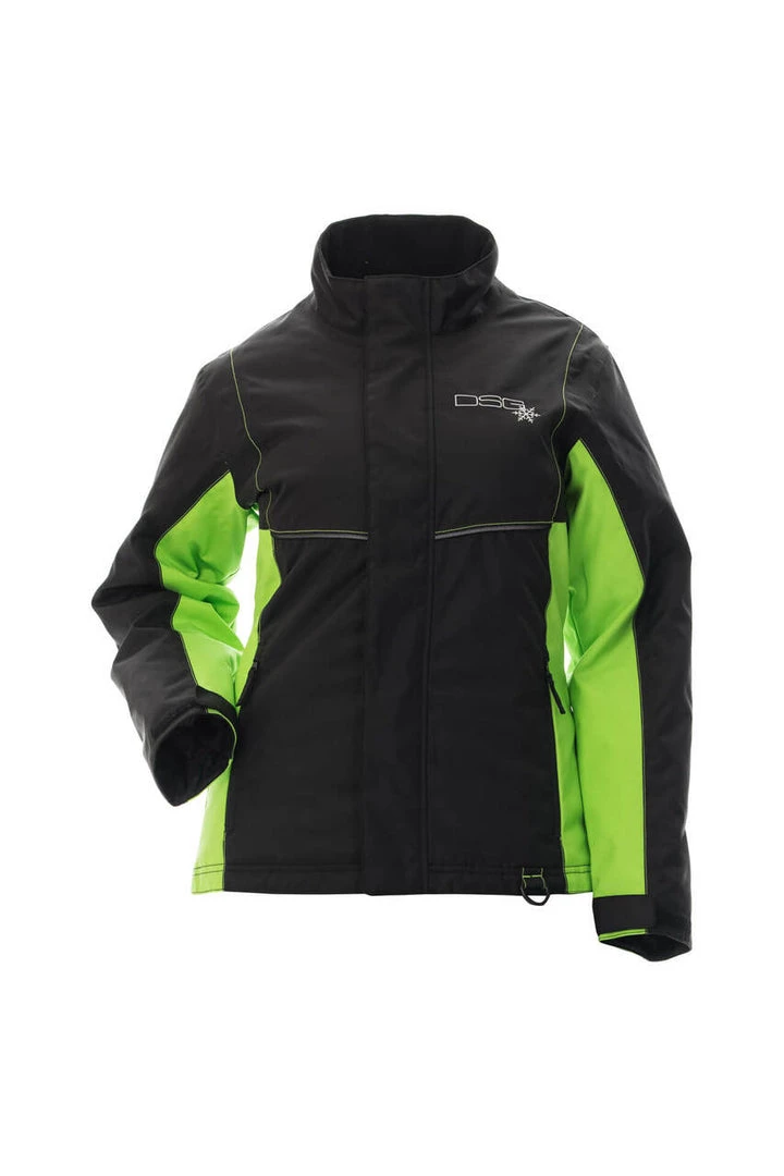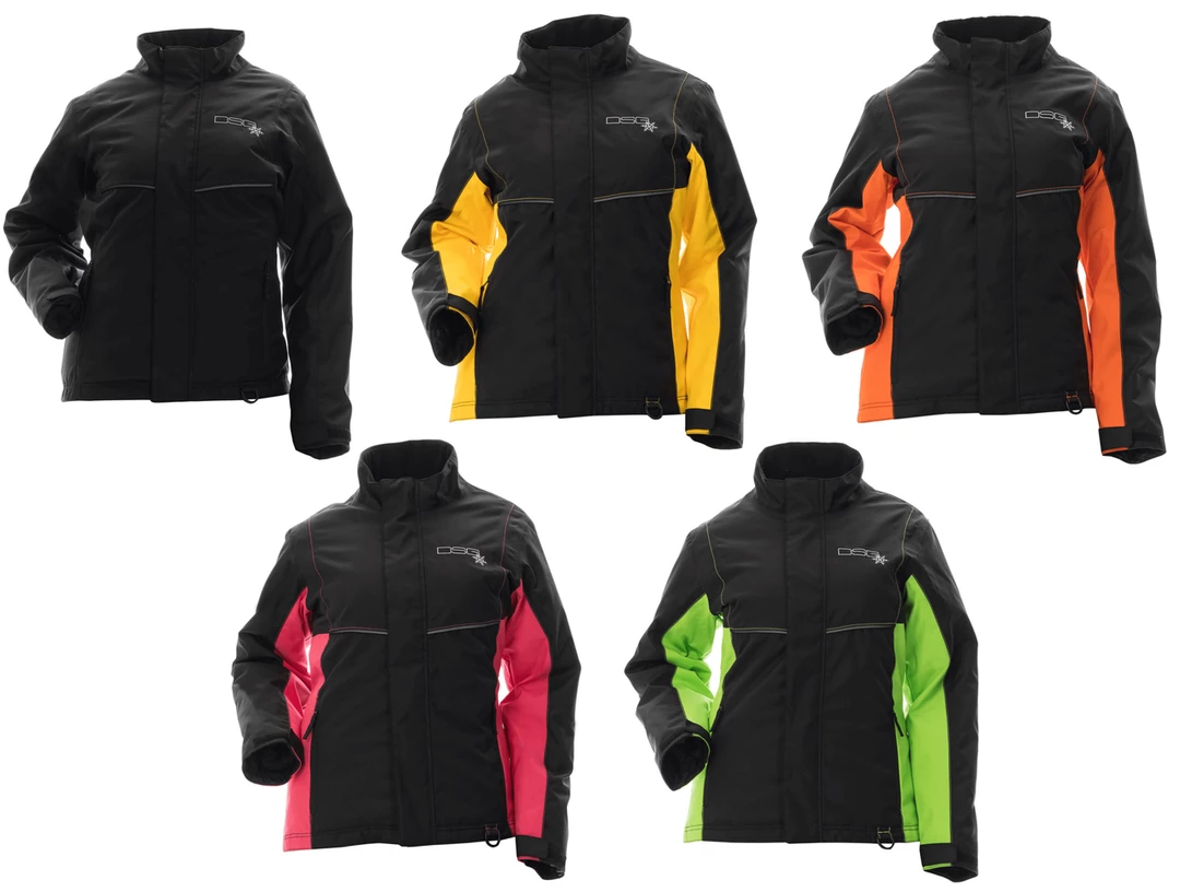 The newest, most affordable addition to the DSG Outerwear lineup. With a feminine silhouette and a dovetail back, this jacket was designed with the female rider in mind. The Trail Jacket is waterproof with fixed insulation, making it ideal for casual trail rides. This jacket comes in 5 color options: Black, Black/Pineapple, Black/Watermelon, Black/Green Apple, and Black/Tangerine. This jacket fits true to size. If you have been seeking out a jacket that is sleek, warm, waterproof and budget friendly, look no further!