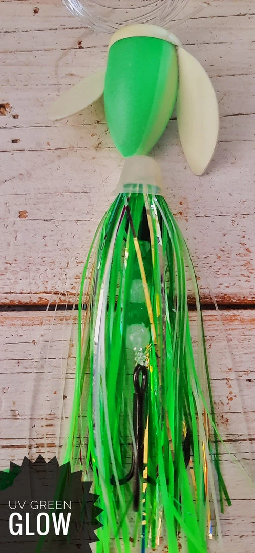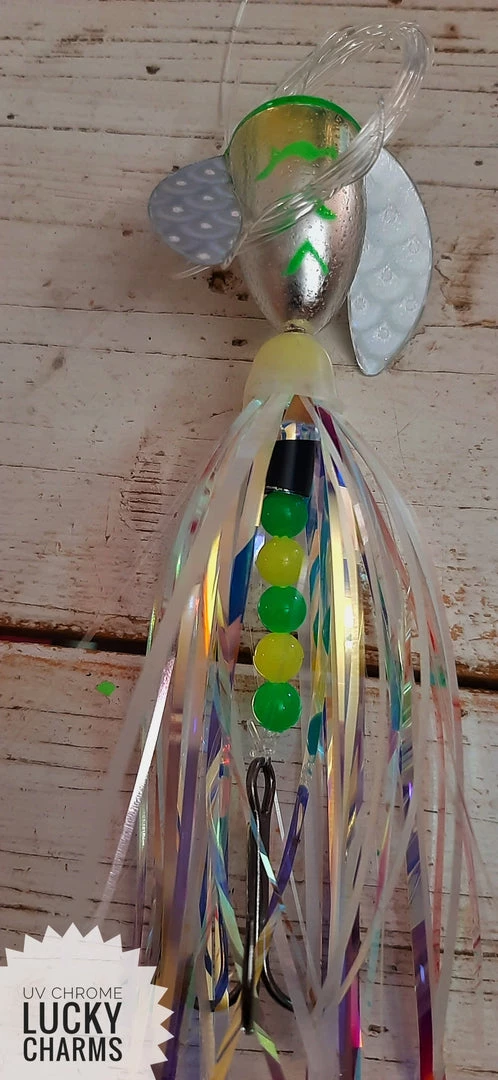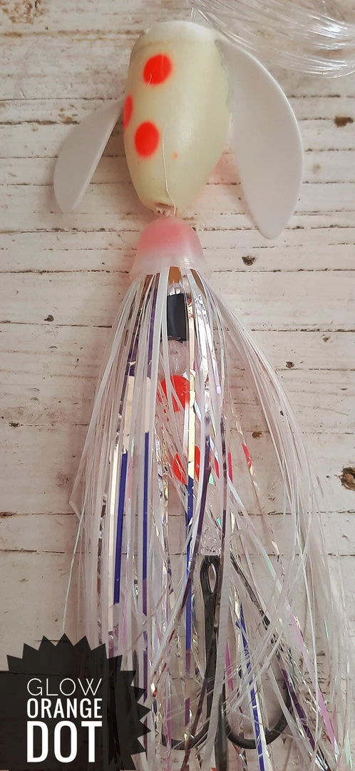 Laker Taker Lures come standard with 50# Fluorocarbon Leader, Size 1 VMC Vanadium Hooks, and Super Glow Beads