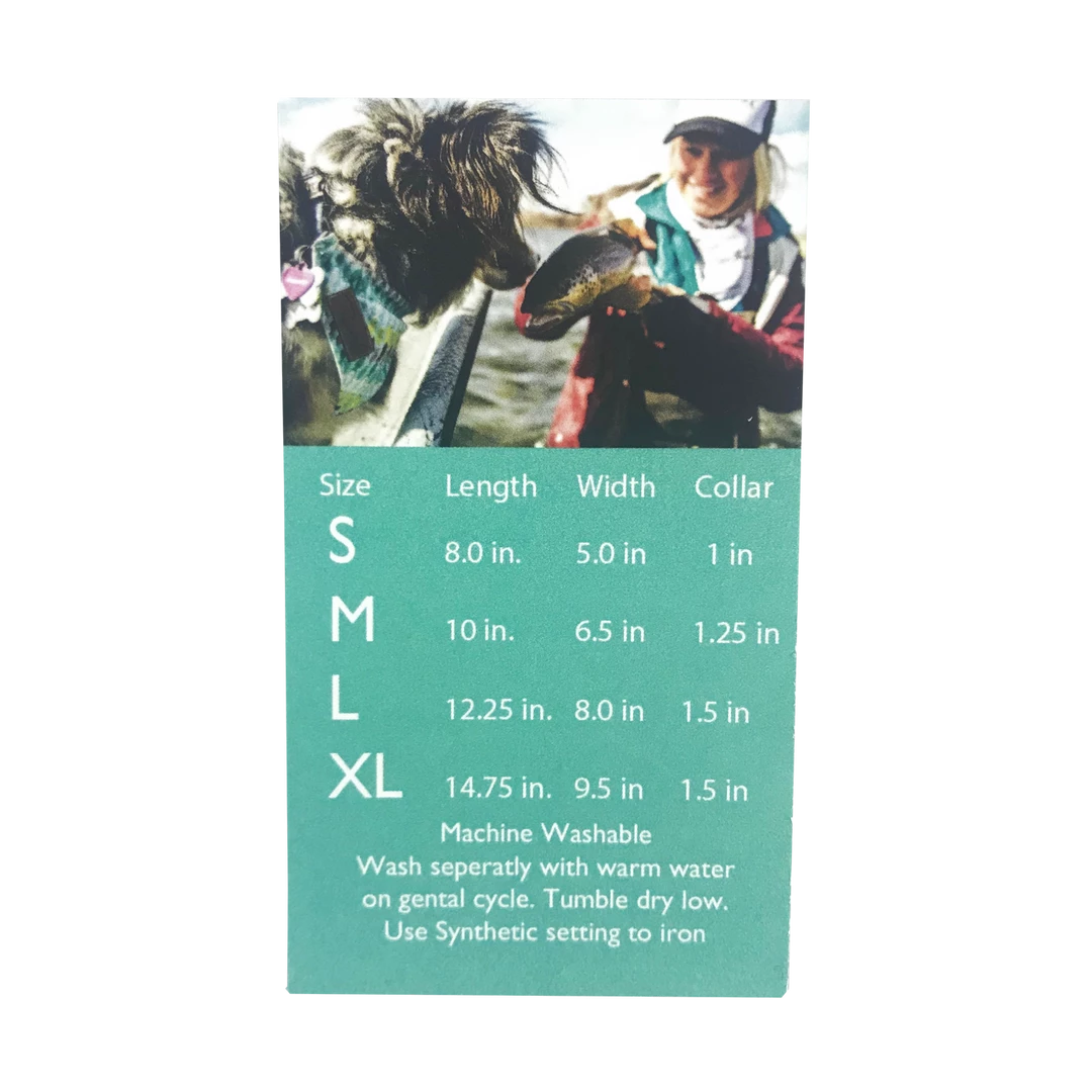 Keep Fido wading fashionably with a Damsel Fly Fishing Snoopy Snood. Simply slide your furry friend’s collar through the opening for an easy fit!