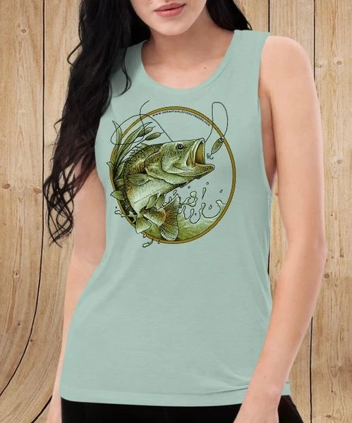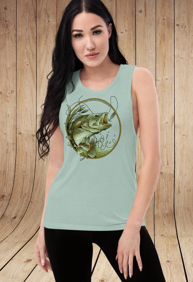 Relaxed fit muscle tank top with our Bass Fishing Logo! Soft, flowing fit with low cut armholes. Color: Mint