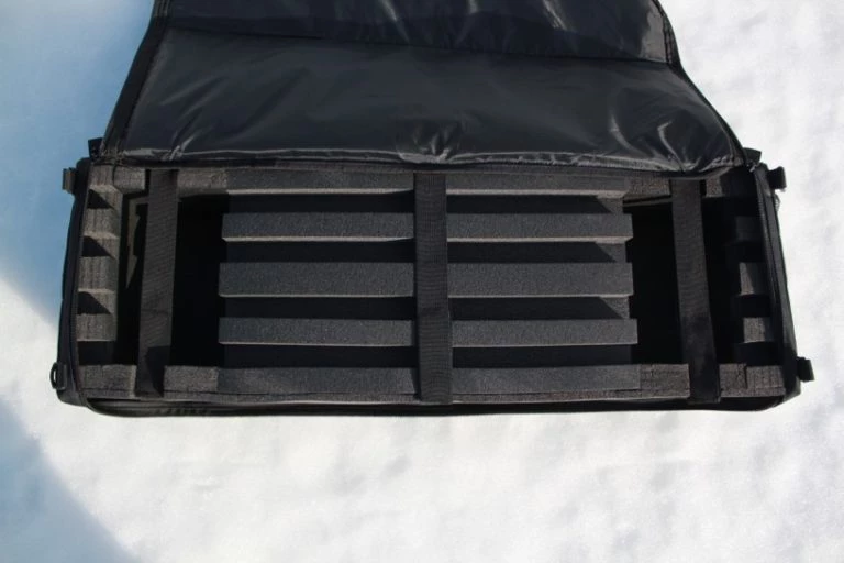 - Top pouch with heavy ICE zipper for 2-3 tip-ups depending on size and