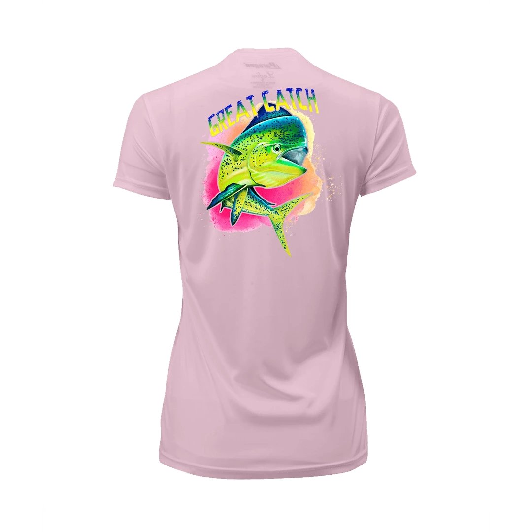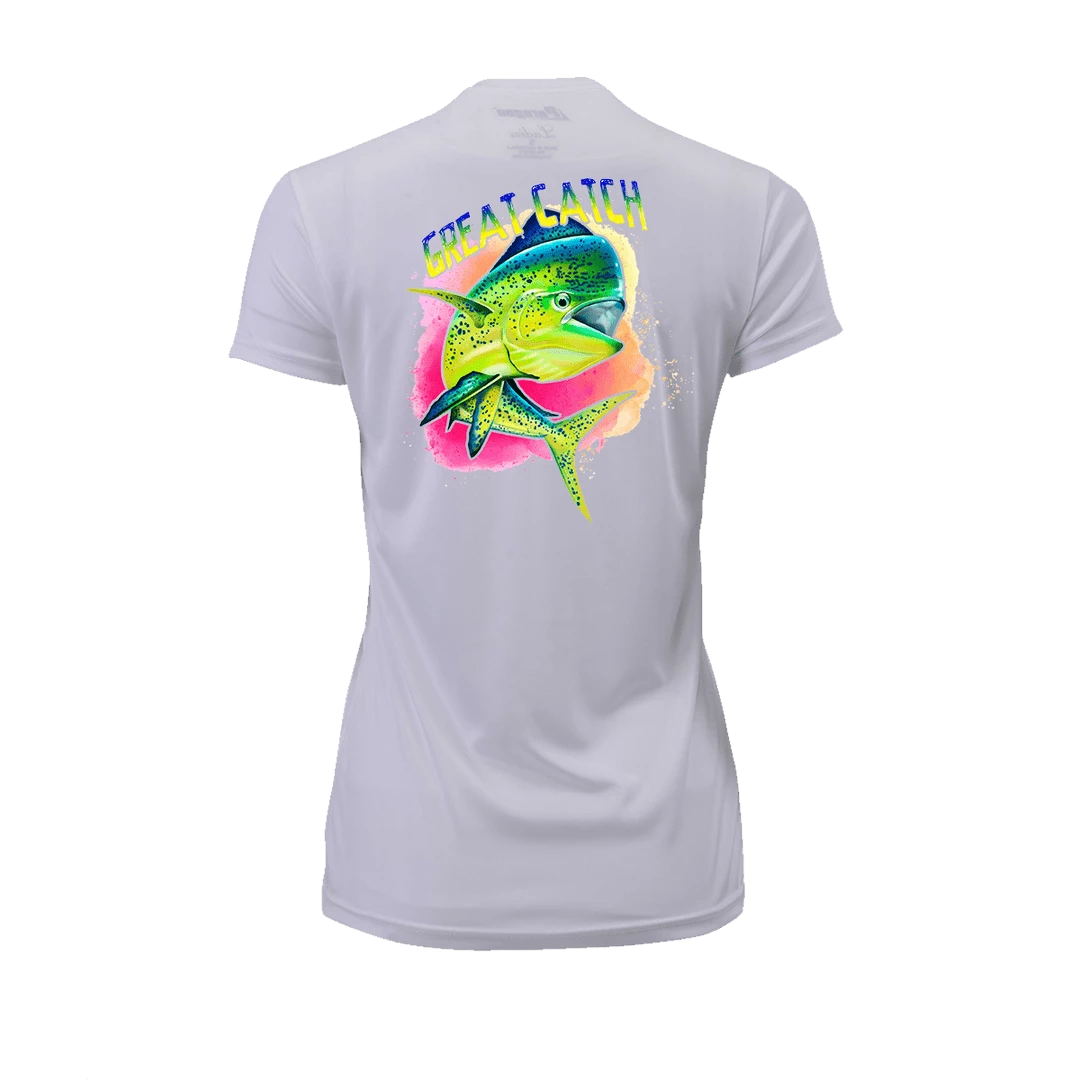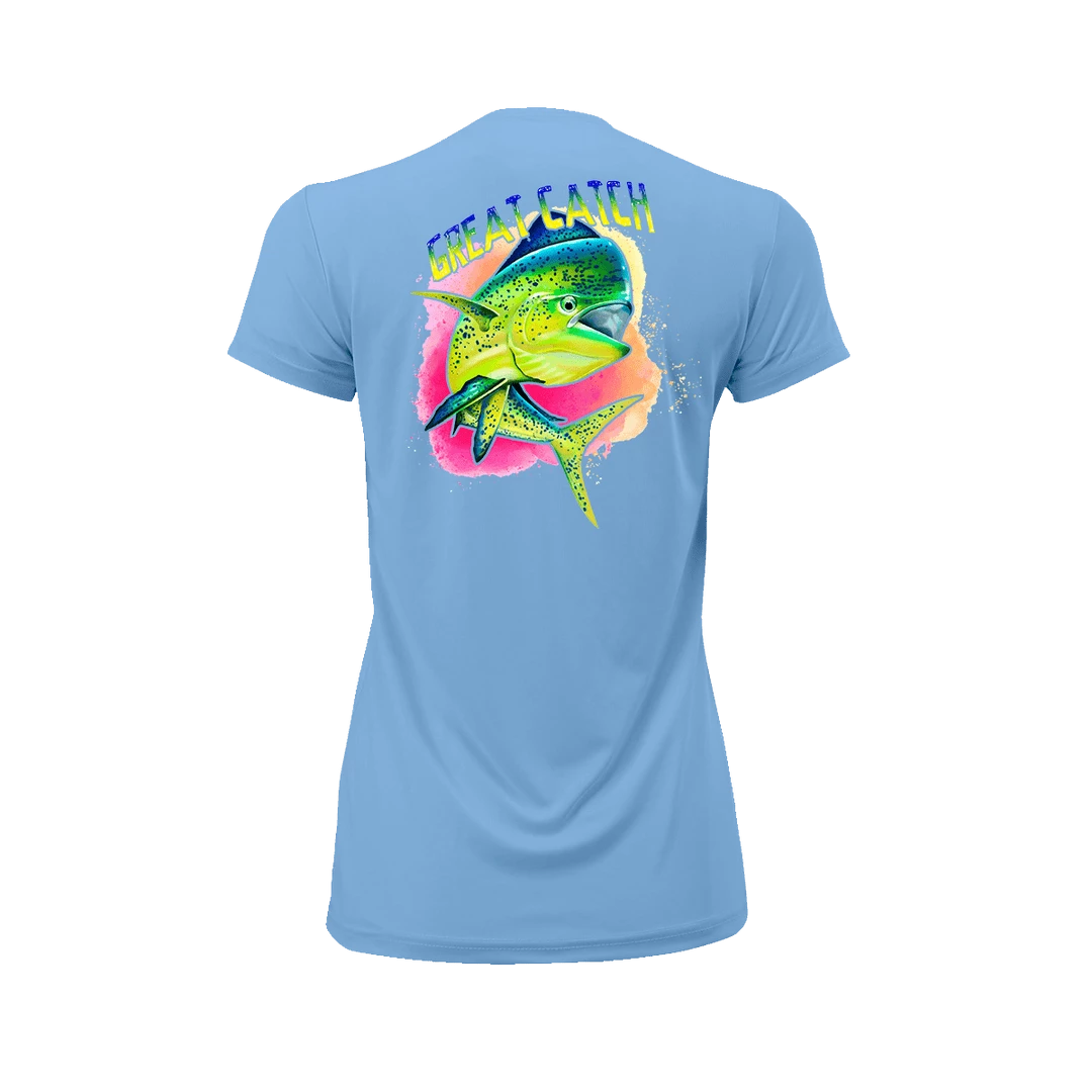 The Great Catch! Short Sleeve Performance Shirt is designed to be worn anywhere. Relax at home, or adventure out in style. Additionally it is made from 100% microfiber performance polyester with an Anti-microbial and Wrinkle Resistant finish. Providing Paragon Plus moisture management and 50+ UPF Protection. This shirt features all of the performance you need: Detailed stitching, Double-needle stitched neck and bottom hem, Self-fabric neck, and Raglan shoulder, inset sleeves. You will never wear this shirt out. Perfect for on the boat, or relaxing at the bar.