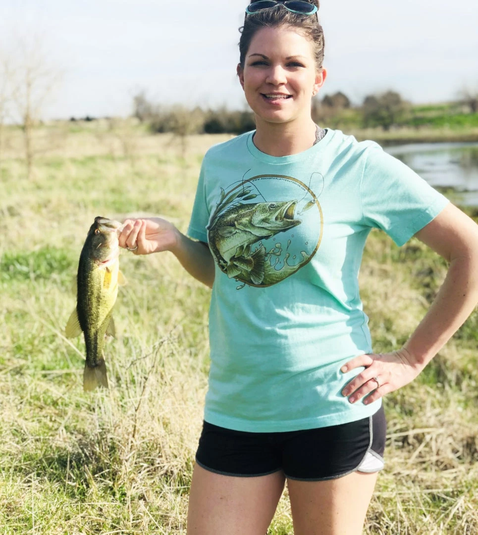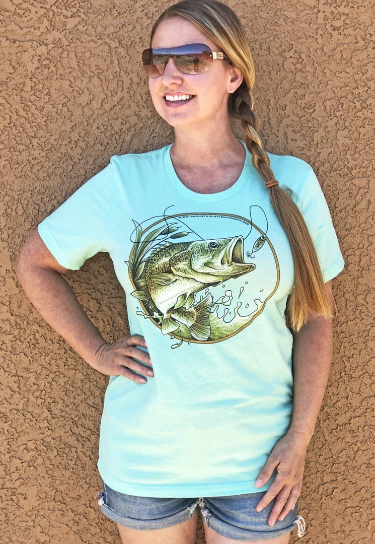 Do you love Bass Fishing as much as we do? This is our NEW fun bass logo loose fit crewneck T Shirt. Â